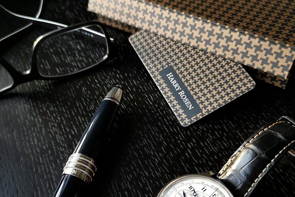 Harry Rosen Gift Card Starting at: $6.95 + gift card value Gift card amounts up to $1,000 USPS First-Class or Priority shipping Personalize the envelope and card Greeting card is 6in x 4in This gift card is suggested for use at Harry Rosen but it may be used everywhere Debit MasterCard is accepted. Harry RosenGift Card delivered in a